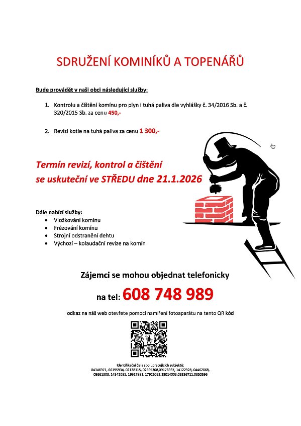 V případě nutnosti je možné otevřít po dohodě na obecním úřadě nebo p. Martinem Žídkem. V pravidelném provozu bude opět od dubna 2026.