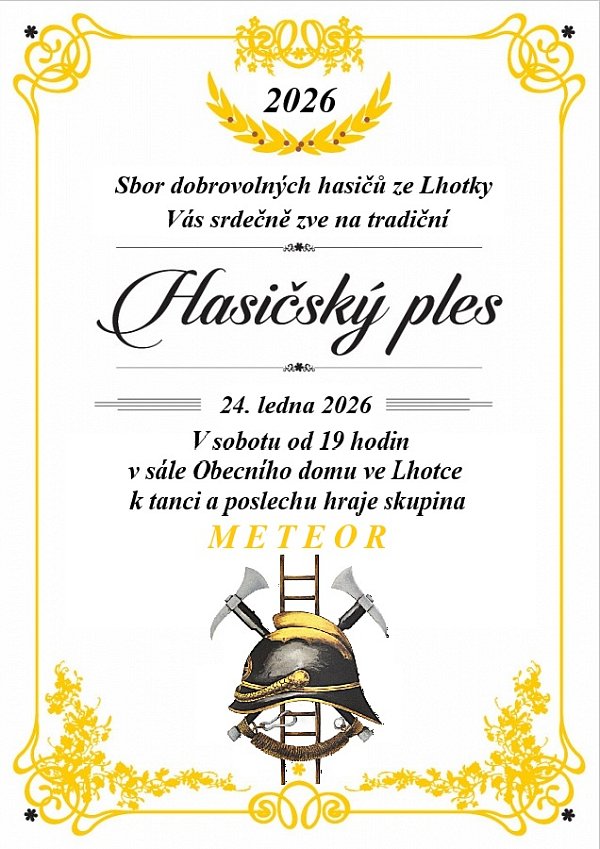 Sbor dobrovolných hasičů Lhotka vás zve na hasičský Ples